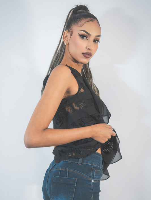 BLUSA CORTA DE ENCAJE AJUSTABLE